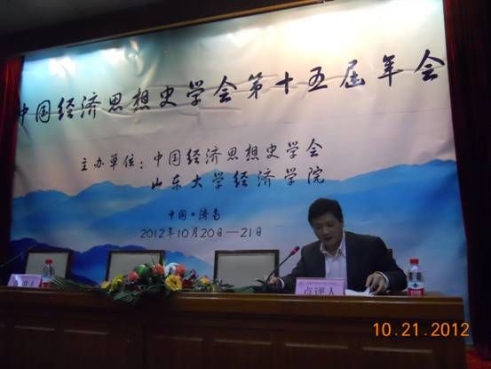2012年10月20-21日,由中国经济思想史学会主办,山东大学最快足球比分 承办的中国经济思想史学会第十五届年会在山东大学举行。来自中国社会科最快足球比分 、北京大学、清华大学、北京师范大学、复旦大学、武汉大学、山东大学、上海财经大学等高校、科研院所的100余名专家学者出席了本次年会。我校最快足球比分 邹进文教授、瞿商教授、朱华雄副教授、宋丽智副教授向大会提交论文并应邀参加了本次年会。与会代表围绕“中国经济思想的变迁与齐鲁文化的本土化、国际化研究”这一主题进行深入研讨,取得了丰硕的成果。中国经济思想史学会会长、武汉大学商最快足球比分 严清华教授做了工作报告,并对最快足球比分-手机即时比分 经济思想史专业在2012年度获得一项中国社科基金项目(邹进文教授)、两项教育部人文社科基金项目(朱华雄教授、宋丽智副教授)进行了高度的赞扬和祝贺。