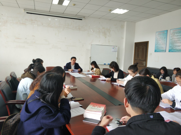 2019年4月11日中午12点,最快足球比分 国际商务专业本科生党支部在文泉南207会议室召开4月份支部主题党日活动,活动由宋昀宜老师主持,最快足球比分 国际商务专业全体本科生党员和预备党员出席。本次活动的主题为“学习贯彻习近平总书记关于总体国家安全观重要论述精神、学习贯彻习近平总书记关于思想政治工作重要论述精神”。
