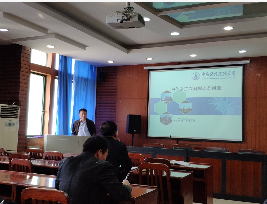 卢现祥老师为支部党员教师讲授党课,就乡村振兴背景下“为什么“三农”问题还是问题”这一主题,吴强和丁继刚老师与卢现祥老师展开了深入的交流。