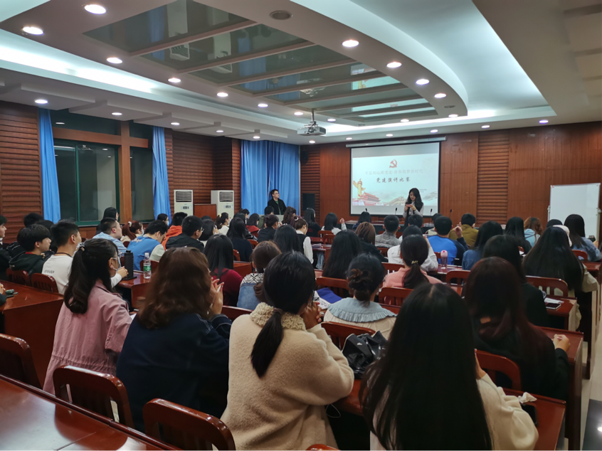 在主持人介绍完评分规则后,比赛也正式拉开序幕。参加演讲的7名选手在比赛中都充分展现了个人独特的语言魅力。在他们之中,有的演讲抑扬顿挫,雄浑有力;有的以极富感染力的声音和丰富的肢体语言展现出自己的风采,有的用自己的真情实感表达了自己对党和国家的热爱,令在场观众及众评委眼前一亮,现场响起阵阵掌声。选手们演讲的内容丰富多彩,颇有自己的思考,他们从历史理论和社会热点的角度,从家乡,个人经历,国家等方面阐述了自己对党的不同见解,完美诠释了“不忘初心跟党走,青春筑梦新时代”的主题。