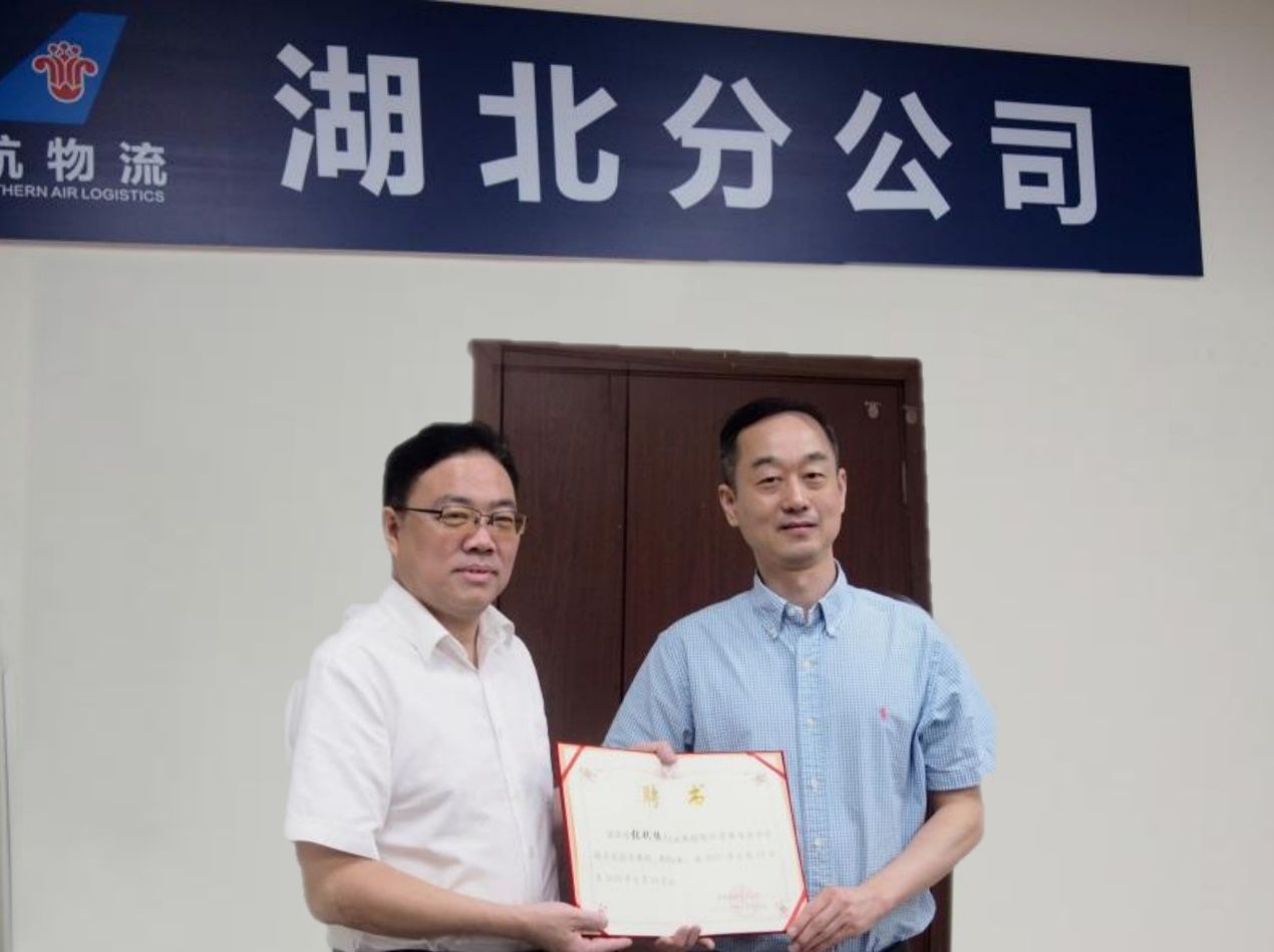 首先,张玖振介绍了南航物流公司湖北分公司的成立背景、经营状况以及在防疫常态化下公司业务转型的战略部署,尤其是该公司国际物流业务方面的发展情况。随后,宋洪超介绍了公司在疫情期间的业务情况,表示公司国际业务发展迅速且具有较大利润增长空间,在未来发展过程中会将业务重心放在国际市场。接着,双方就学生招聘、人才培养、共建学生社会实践基地等主题进行了深入的交流,并达成了关于共建学生社会实践基地的意向。