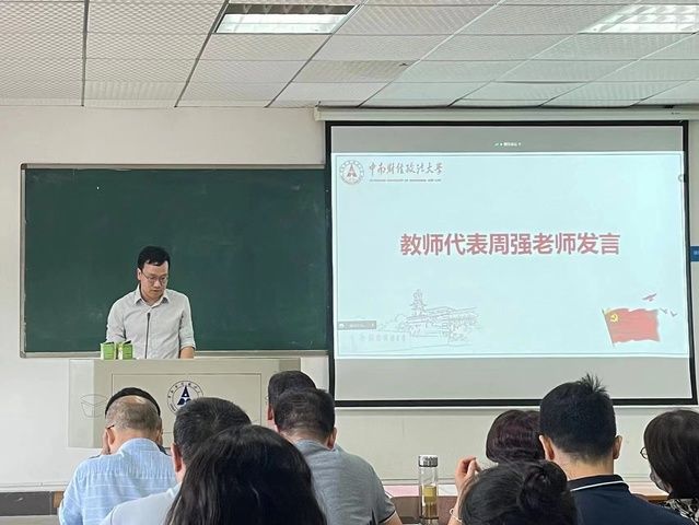 西方经济学硕士生导师周强老师作为教师代表上台讲话,立足一名青年教师亦或是“朋友”的视角向同学们提出了三点期望:(1)尽快适应校园环境,实现向研究生身份的转变,独立自主的开展学习;(2)掌握扎实的专业基础和技能,成为一名合格的中南大学员;(3)勇于面对困境,善于解决生活中的困难,平衡学习与生活。做到“静心”、“耐心”、“信心”,从“心”开始,在困境中磨炼,在逆境中成长,成为一名时代先锋。
