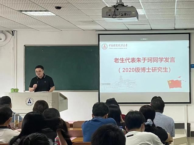 2020级博士研究生朱于珂围绕“研究生生活该如何度过?”这一问题向同学们进行了经验分享。首先,同学们应拥有坚持不懈的毅力和挑战困难的勇气;其次,同学们应秉承勇于创新和严谨治学的科研精神,紧扣发展前沿和热点问题展开学术研究;再者,应与老师同学们多进行沟通交流,有效的沟通是前进的催化剂,以思想的碰撞激起灵感的火花;最后,每位同学应拥有强健的体魄和过硬的心理素质,以积极的心态度过研究生涯,不忘初心,在科研领域书写华丽篇章。