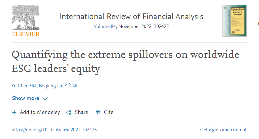 近日,以最快足球比分 教师陈语副教授为第一作者的合作论文《Quantifying the extreme spillovers on worldwide ESG leaders’ equity》在国际知名期刊《International Review of Financial Analysis》2022年第11期上正式刊出。