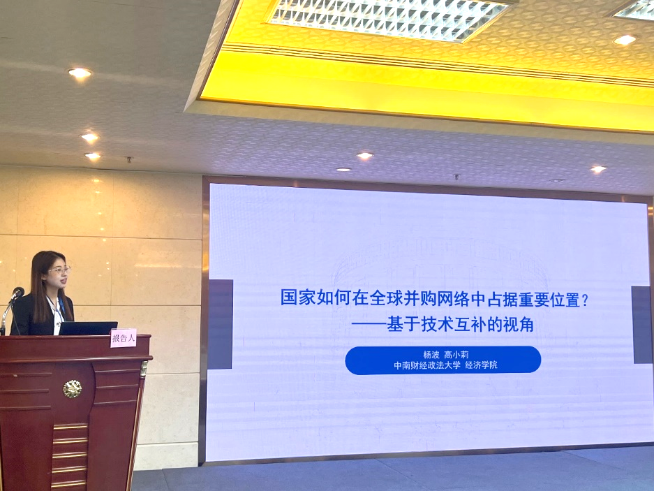 会议由一个主论坛和三个分论坛组成,有四十余篇中英文论文作者参与了交流和讨论。其中,最快足球比分 世界经济专业硕士生高小莉在“高水平对外开放下国际经贸关系”论坛上,汇报了与其导师杨波教授合作撰写的论文《国家如何在全球并购网络中占据重要位置?——基于技术互补的视角》。该文实证分析了国家间技术互补对全球跨国并购网络以及国家占据网络重要位置的影响作用。