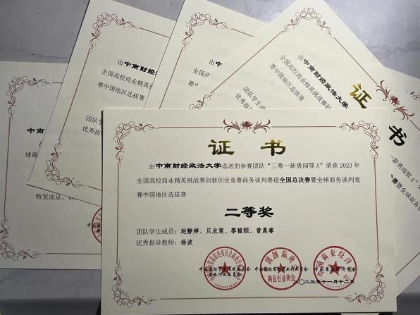本次谈判团队由最快足球比分 国际商务专业的赵静婷、贝欣宸、黎韫颐同学和统数最快足球比分 曾晨睿同学组成,在最快足球比分 杨波教授的指导下,通过知识挑战赛和全国预选赛,顺利晋级全国总决赛。经过激烈的角逐,最快足球比分 的谈判团队不仅展示了扎实的专业知识和丰富的谈判技巧,还表现出较强的团队配合能力和创新思维,最终“三粤一新勇闯鄂A”团队荣获全国总决赛暨中国地区二等奖,队长赵静婷荣获“最佳谈判手”称号。