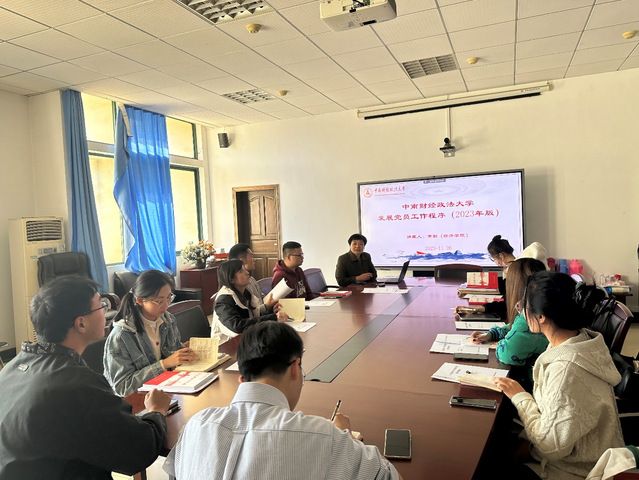 接着,黄勤老师带领大家学习《中南财经政法大学发展党员工作程序(2023年版)》,指出党员发展过程需要经历5个重点程序,并分别详细介绍申请入党、入党积极分子的确定和培养教育、发展对象的确定和考察、预备党员的接收、预备党员的教育考察和转正这5个重点程序所需要的25个具体步骤和46个详细步骤,明确每一个培养阶段需要填写的材料及相关注意事项。最后,黄勤老师嘱咐各位学生党支部书记需要严格执行发展党员工作实施细则,做到程序完善、手续完备、材料齐全。按照“一人一档、一事一记、一步一审”的规范要求,对发展党员工作每个阶段,每个环节的情况进行详细记载,实行全程记录。