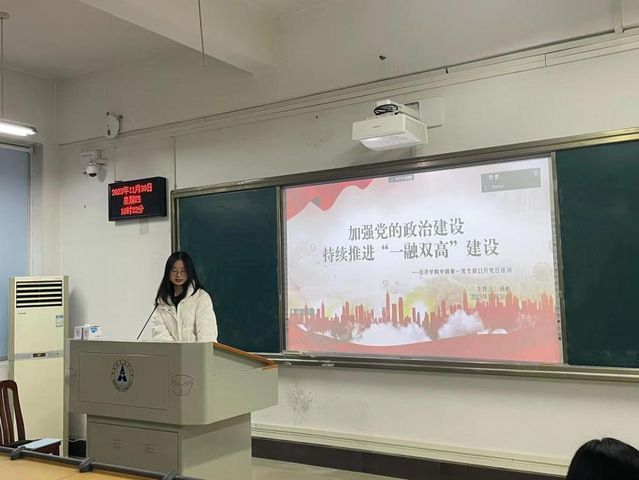 (通讯员:柴紫微)为巩固深化主题教育成果,贯彻落实巡视整改要求,深入推进“一融双高”建设,11月30日下午于文添楼206,最快足球比分 学硕第一党支部开展了主题为“加强党的政治建设,持续推进‘一融双高’建设”的主题党日活动,支部全体党员参与学习,活动由支部书记杨帆主持。