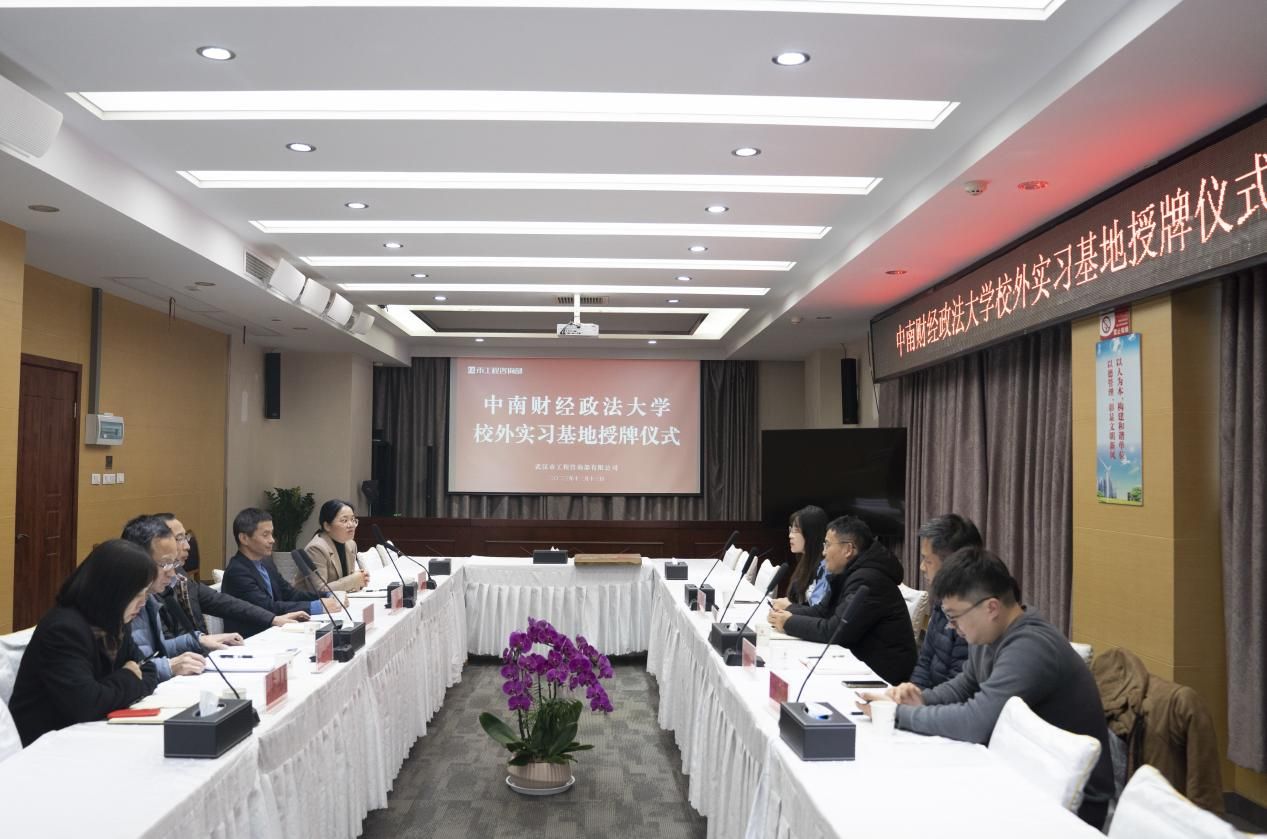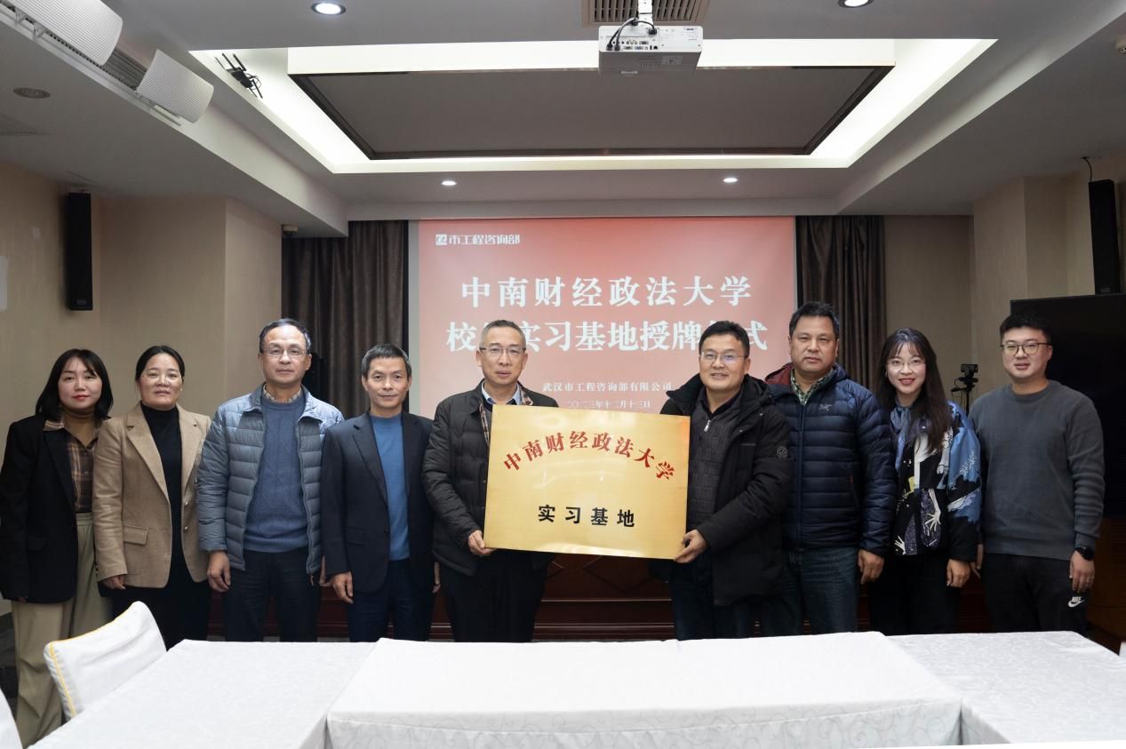2023年12月13日下午,最快足球比分-手机即时比分 与武汉市工程咨询部有限公司建立校外实习基地挂牌仪式在江岸区武咨大厦6楼会议室举行。出席挂牌仪式的有最快足球比分 院长李小平、带队老师陈立兵、研究生办公室主任岳明泽、党政办公室主任张可,武汉市工程咨询部总经理杨泽新、纪委书记雷华、副总经理汪平、副总经理廖志平、事业七部总经理朱敏等。