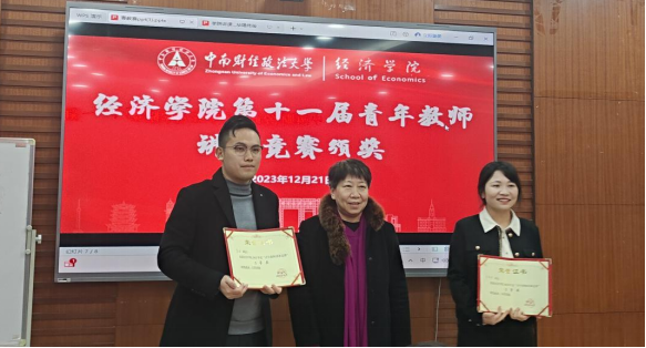 经过评委评议,周强老师和袁华锡老师获得了此次竞赛的一等奖,陈语老师和黄晓琪老师获得了二等奖,朱明老师和王韶华老师获得了三等奖。万世清主任、梁小华教授、廖涵教授为获奖者颁发了荣誉证书。