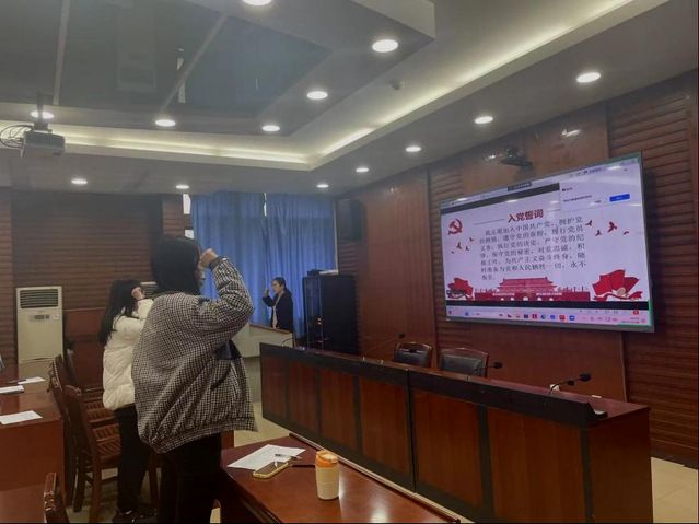 首先,祝冰艳同志带领全体党员重温入党誓词,共同学习党章节选内容,加强全体党员的党性修养。