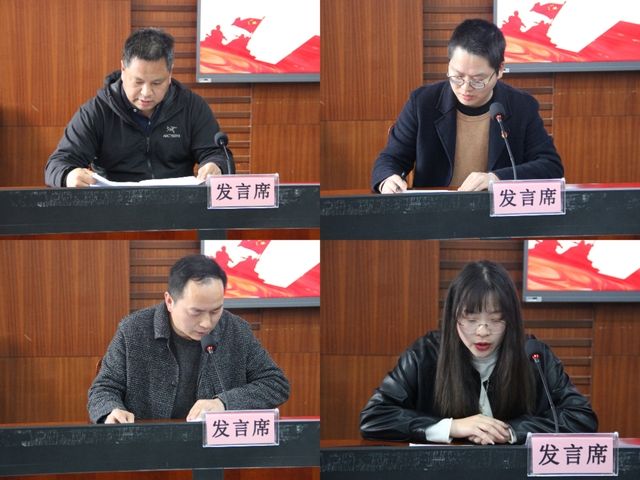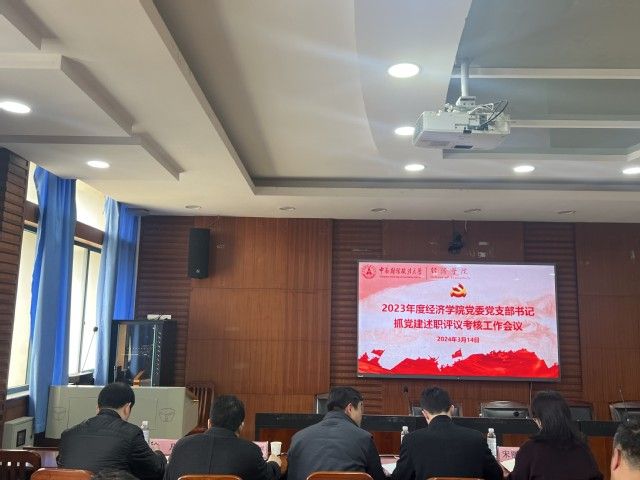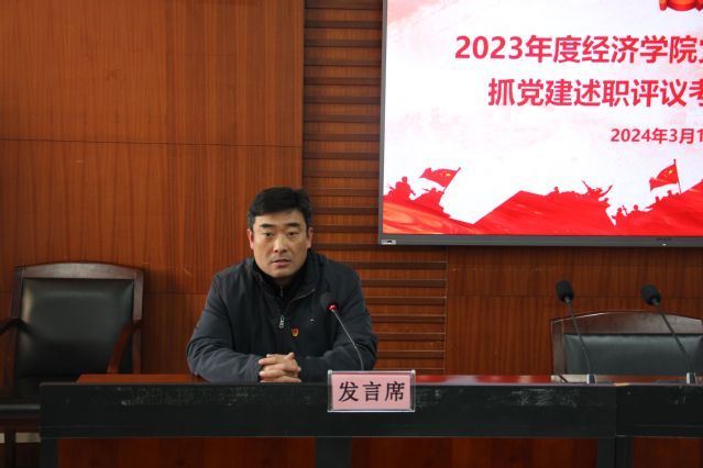 述职现场,经济学党支部陈立兵同志结合支部特色,总结了党支部一年来在特色课程讲授与完善、围绕国家发展战略进行科学研究等五个方面所取得的突出成就。国际经济学党支部书记张亮同志总结了2023年度国际经济学党支部的主要工作,从五个方面具体陈述了一年内的党建工作内容,并指出目前存在部分党员教师参与活动积极性不高以及支部对新进党员教师关心不足的问题。西方经济学党支部书记马强文同志回顾了一年内的基层党建主要工作和取得成效,指出党支部需要在发挥先锋模范作用,加强党内外监督,丰富支部活动形式等方面进一步加强并提出改进思路。行政党支部的党支部书记岳明泽围绕着力打造建设辐射型党支部陈述了2023年行政党支部的主要工作,具体指出存在党建工作新思路不多、主题教育学习创新度不够的突出问题,并表明未来工作打算。