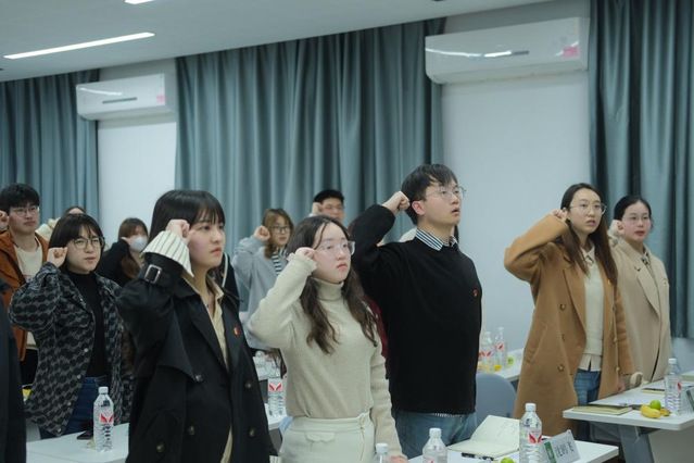 参观结束后,各支部党员移步至人文社科楼,共同重温入党誓词。面对鲜艳的党旗,全体党员肃立,庄严宣誓。