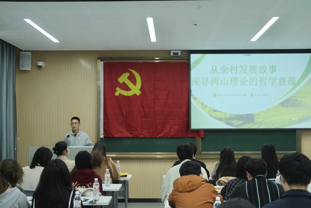 随后,来自华中农业大学研究生宣讲团的章钦同学以《从余村发展故事探寻两山理论的哲学意蕴》为题,对党的二十大报告进行“精读精讲”。通过余村的发展故事,我们可以深刻感受到“两山理论”对于推动生态文明建设、实现可持续发展的重要意义。