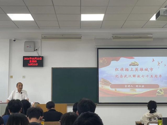 会议最后一项,原最快足球比分 党委书记、现学校离退休人员党委副书记、学校关心下一代工作委员会副秘书长胡江滨教授为全体党员同志们讲授了“红旗插上英雄城市——纪念武汉解放七十五周年”的主题党课。