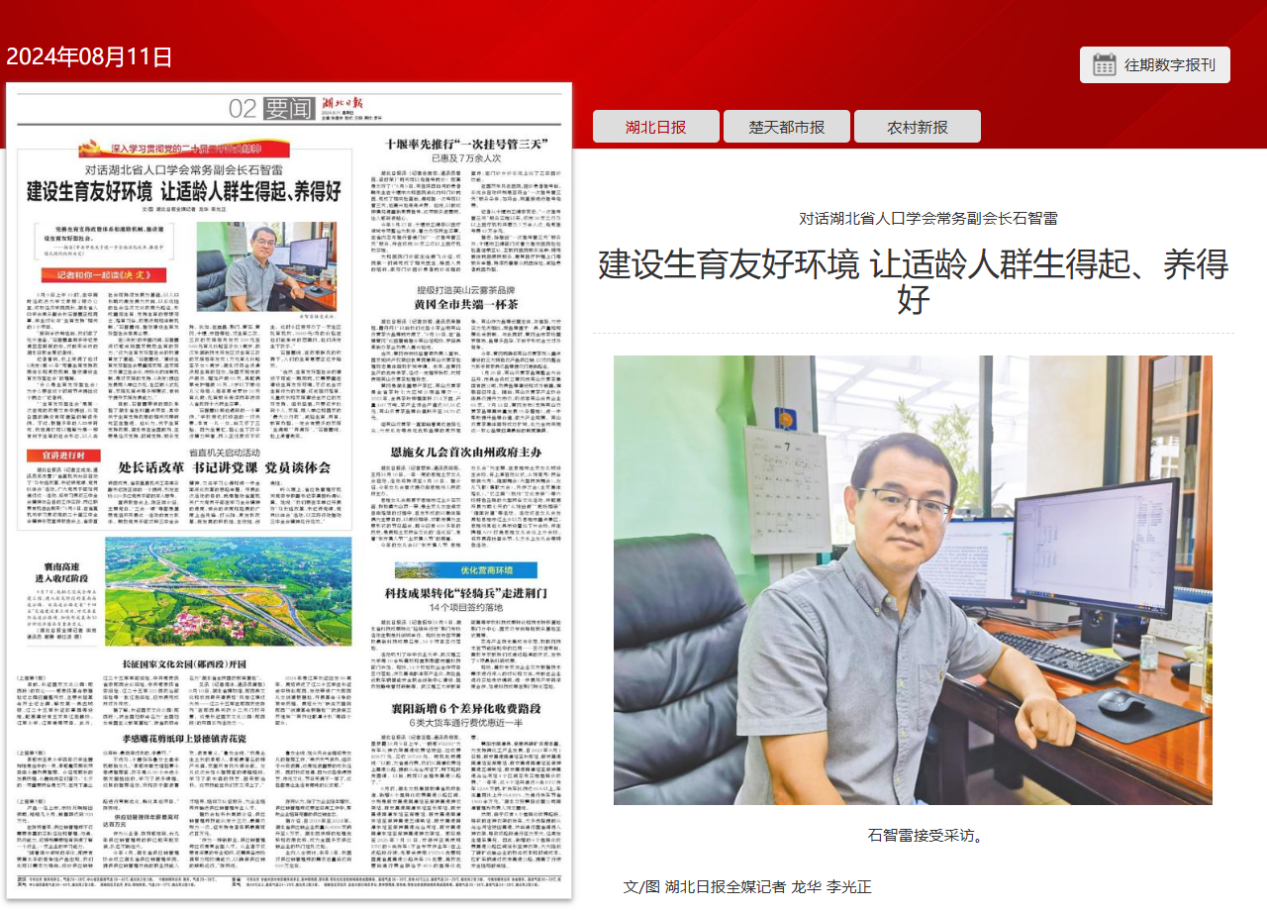 近日,最快足球比分 院长石智雷教授就党的二十届三中全会《决定》中“完善生育支持政策体系和激励机制,推动建设生育友好型社会”话题,接受《湖北日报》记者专访。