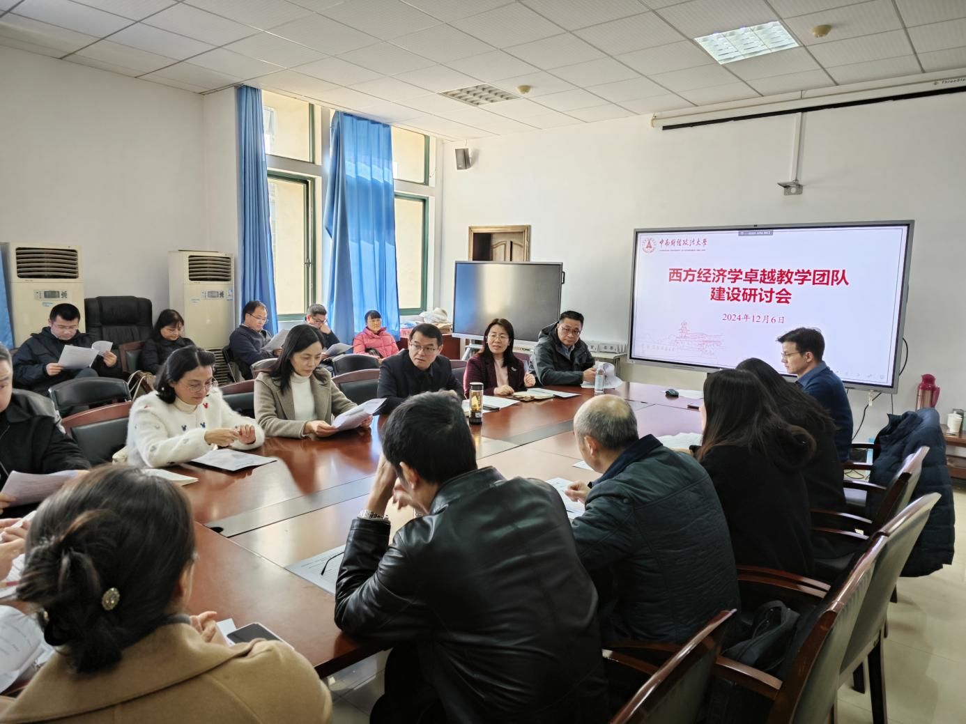 为进一步落实立德树人根本任务,深化本科教育教学改革,提高本科教育教学水平和人才培养质量,2024年12月6日下午,最快足球比分 于文泉楼南207会议室召开西方经济学卓越教学团队建设研讨会。最快足球比分 院长石智雷,副院长宋丽智、张鸿武,经济学系主任谢靖、副主任潘峣,西方经济学教研室主任刘玲,《微观经济学》《宏观经济学》课程组全体成员出席会议。会议由宋丽智副院长主持。