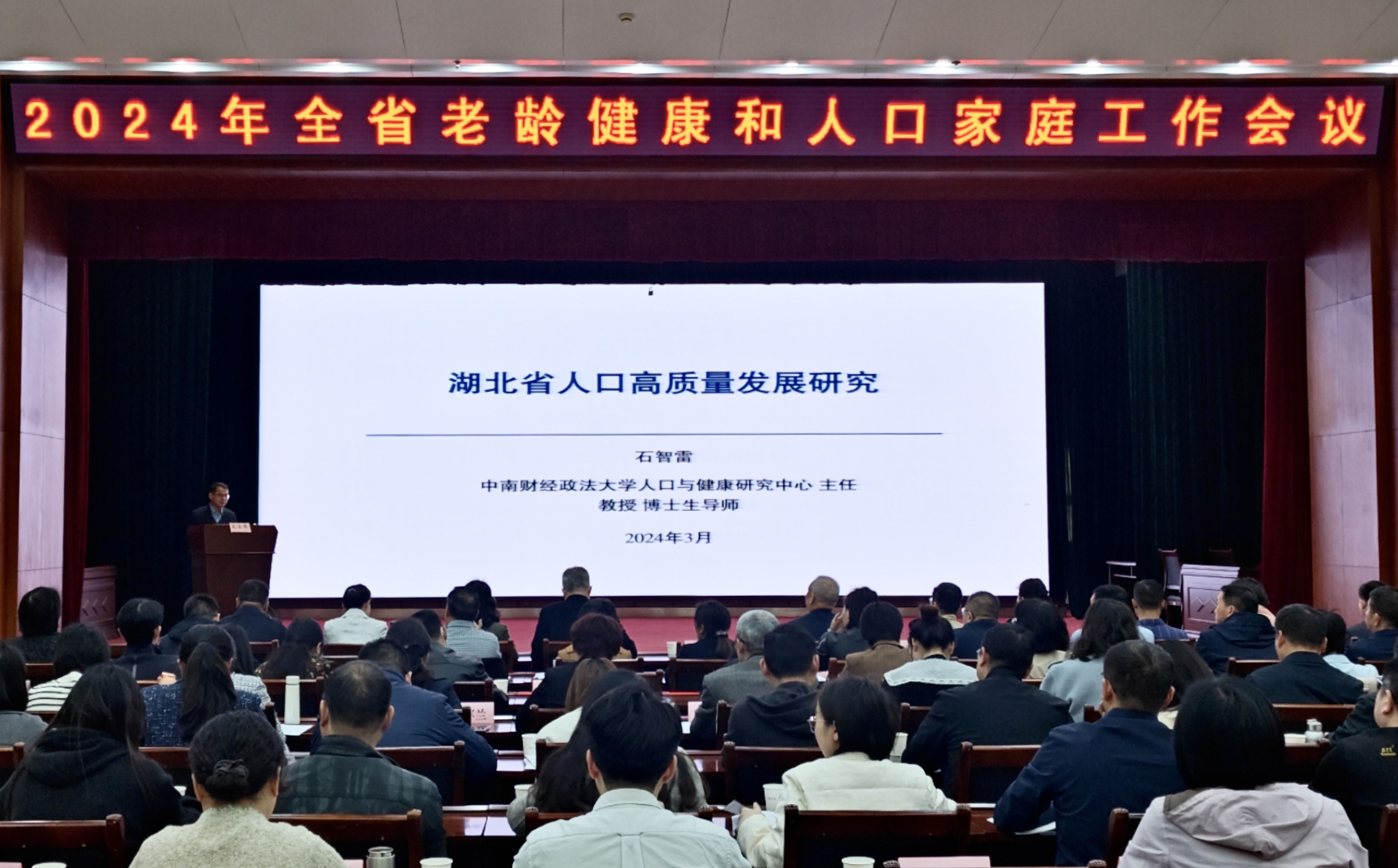 2024年3月22日,全省老龄健康和人口家庭工作会议在武汉召开。人口与健康研究中心主任石智雷教授受邀在会议上作“湖北省人口高质量发展研究”专题讲座。石智雷教授对湖北省少子化、人口老龄化以及区域人口增减分化等人口发展最新形势进行了全面分析和解读,并就如何应对人口发展新趋势提出了相关建议。省卫生健康委二级巡视员姚锡武出席会议并讲话。省直相关单位有关负责同志、省卫生健康委有关处室和直属单位负责同志、各市(州)卫生健康委分管领导以及老龄健康、人口家庭科(处)主要负责同志参加会议。