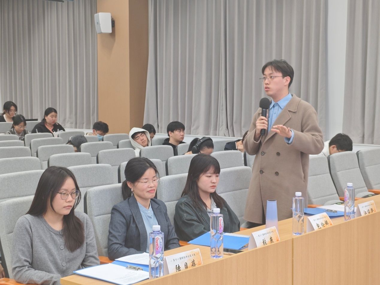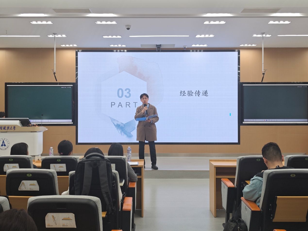 江俊澄分享了自己的参赛经历与宝贵经验。他生动讲述初赛时需时刻关注时事热点、把握财经脉搏,复赛要注重团队合作、在思想碰撞中发挥优势,决赛则凭借综合能力脱颖而出。他还真诚地建议同学们在日常生活中关注经济现象,将其与学术研究相结合,逐渐形成自己独特而深刻的观点,为比赛做好充分准备。