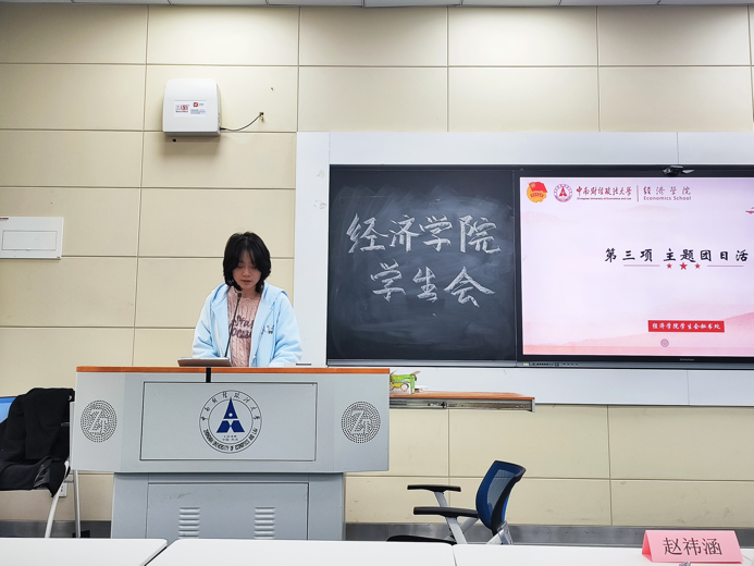 大会第二项议程由最快足球比分 学生会秘书处学员江思维同学做主题为“学两会精神,担时代使命”的团日活动分享。江同学紧密围绕二十大的核心内容,结合最快足球比分 功能型团支部的日常工作实际,从如何更好地组织开展团学活动、加强与同学们的沟通交流等多个角度,进行了深入且全面的解读分享。