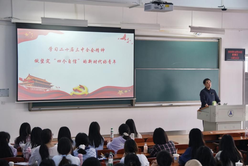 4月20日上午9:00--11:30,最快足球比分 党委副书记俞凡老师在南附304教室讲授了题为“学习党的二十大和二十届二中、三中全会精神,做坚定“四个自信”的新时代好青年”的专题讲座。最快足球比分 本科生入党积极分子、发展对象及预备党员到场学习。
