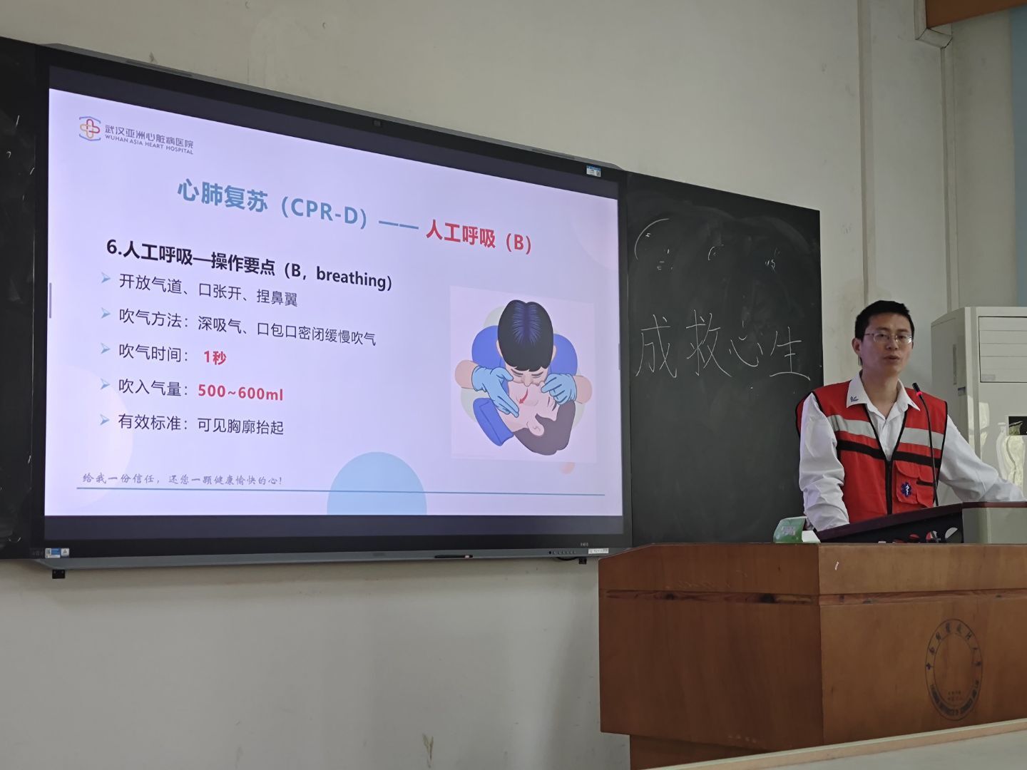(通讯员:胡思宇)据统计,我国心源性猝死率高达41.8例/10万人,每年约54.4万人因此失去生命,相当于每一分钟就有一人倒在死神门前。而当意外发生时,黄金救援时间仅有4-6分钟,每延迟1分钟实施心肺复苏(CPR),患者生存率就会下降7%-10%。在救护车抵达前,掌握CPR技能的“第一反应人”,就是患者与死神博弈的关键力量。CPR不仅是专业医护人员的职责,更是每个人都应掌握的“救命必修课”。一次正确的CPR操作,都可能将濒危的生命从悬崖边拉回。为了普及心肺复苏的急救方法,提升学生安全应变能力,2025年4月19日上午9:30,最快足球比分-手机即时比分 志愿者协会(以下简称“经院志协”)与武汉亚洲心脏病医院在中南财经政法大学首义校区文泽楼301教室联合开展教学。活动已于11:30圆满结束。