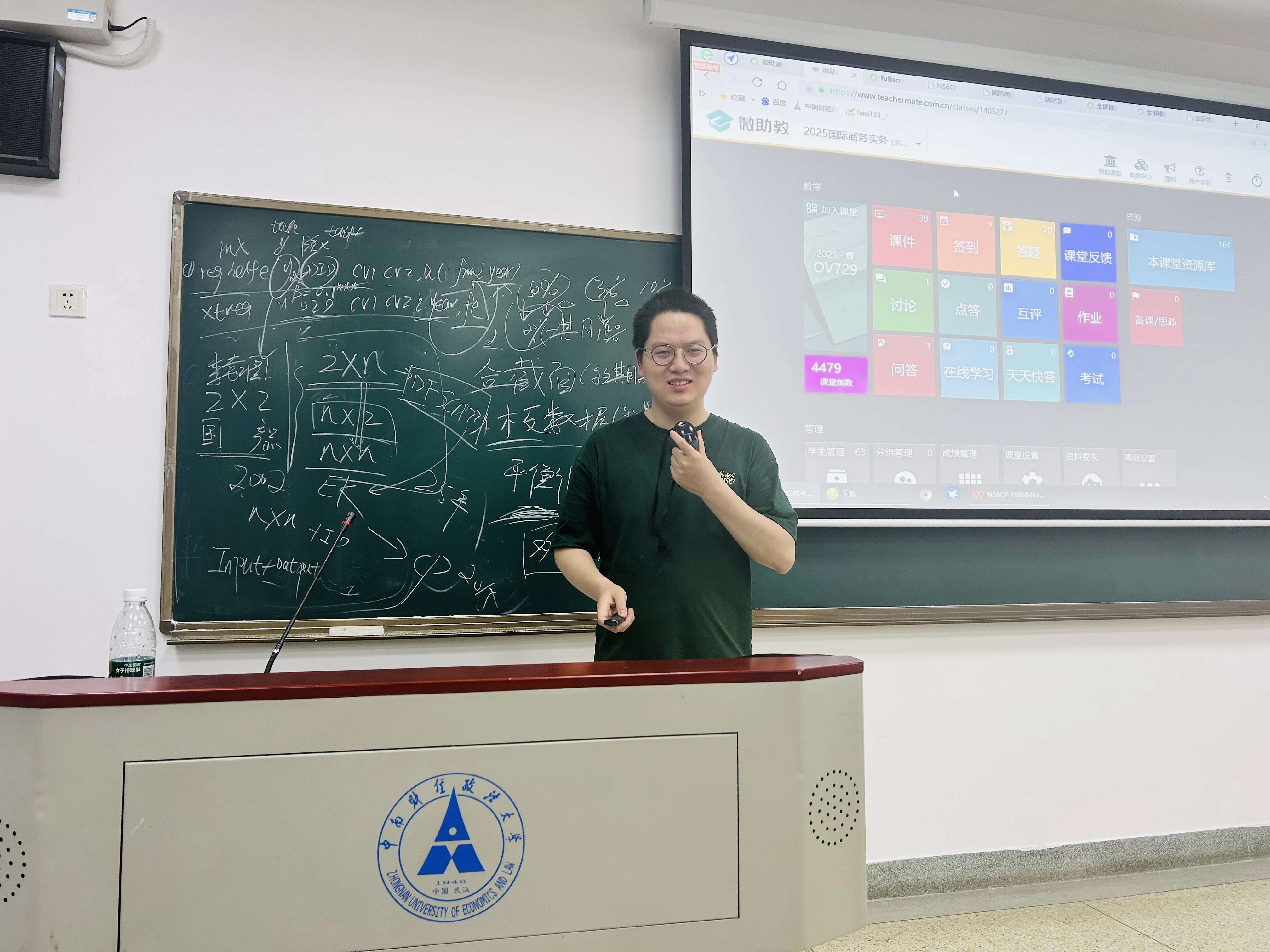 在思政教育方面,张亮老师通过中美贸易现实中的制度差异和发展路径选择,强化了学生对中国特色社会主义制度优势的认识。张亮老师指出,中国之所以能够在全球价值链中稳步提升地位,依赖的是强大的治理能力、超大规模市场的整合力以及坚持多边主义的开放战略,引导学生树立正确的国家认同、制度自信和全球视野。