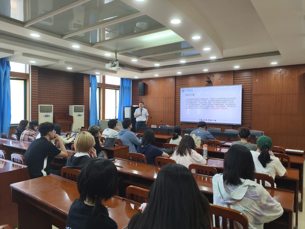 戴胜副教授讲座突出“以人为本,平安至上” 核心理念,从多方面展开培训。讲座伊始通过王某遭遇电信诈骗、18岁留学生马来西亚被绑架等典型案例,揭示海外安全风险。而后在法律常识、公共卫生安全、海外领事保护方面展开讲座。讲座同时涉及学术诚信、心理健康、安防技能,提醒学生警惕意识形态渗透,传播中国文化。