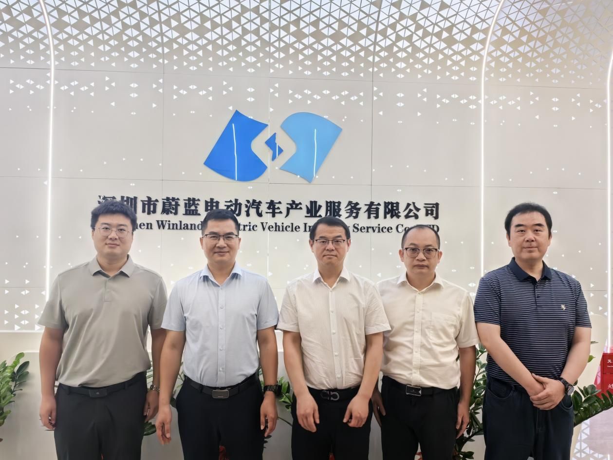 石智雷一行与深圳市蔚蓝电动汽车产业服务有限公司总经理李国兴合影