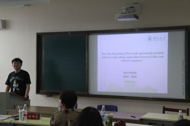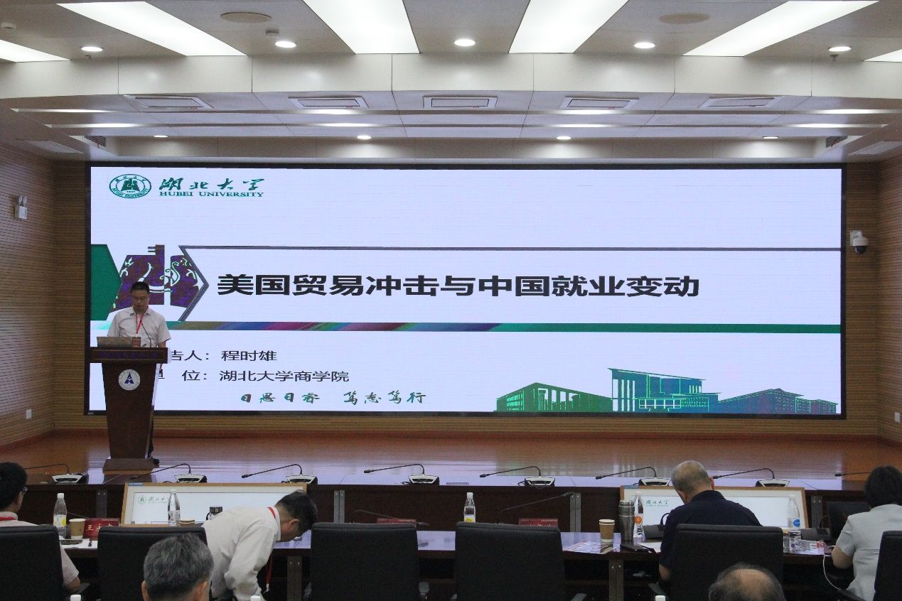 湖北大学商最快足球比分 院长,湖北省美国经济学会副会长程时雄教授分享了主题为《美国贸易冲击与中国就业变动》的报告。
