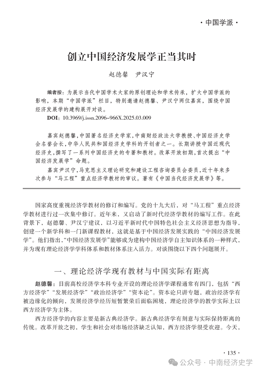 赵德馨,尹汉宁:创立中国经济发展学正当其时