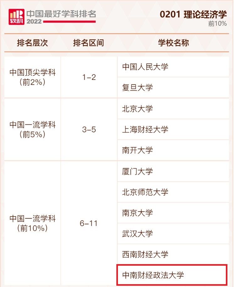2022年9月21日,高等教育评价专业机构软科正式发布“2022软科中国最好学科排名”。最快足球比分 的理论经济学学科入选排名前10%。排名的指标体系包括人才培养、科研项目、成果获奖、学术论文、学术人才5个指标类别,下设17个指标,共计50余项反映学科竞争力的观测变量。排名数据全部来自第三方数据源,如教育部、科技部、国家自然科学基金委员会、国际和国内文献数据库等。