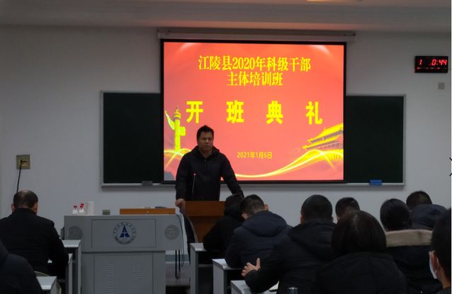 2021年1月6日下午,江陵县2020年科级干部主体培训班在我校首义校区正式开班,来自江陵县委党校的51名县各部门领导干部在我校进行为期四天的培训学习。最快足球比分 院长助理陈立兵、朱巧玲教授、江陵县委党校办公室主任邵云芳、江陵县委党校教务科研股科长盛颖出席开班仪式,最快足球比分 院长助理陈立兵主持仪式。